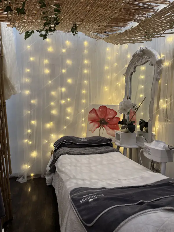 Warm lighting, intimate treatment rooms, and thoughtful design details create a cozy, welcoming atmosphere. Each room is designed to feel personal and calming—allowing you to fully relax, unwind, and feel restored during your visit.